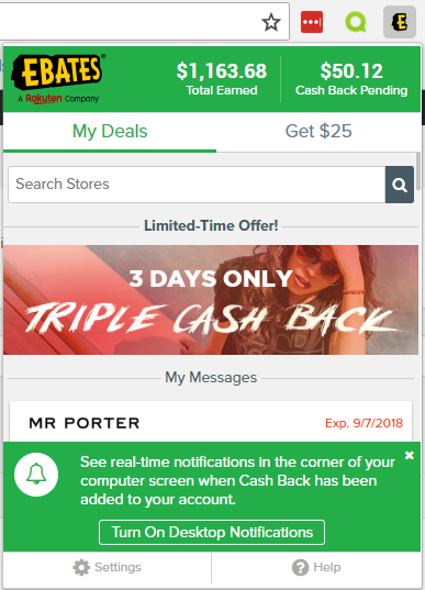 You choose where you want to shop, simply activate the Ebates tab on Chrome or select the store from the Ebates website.