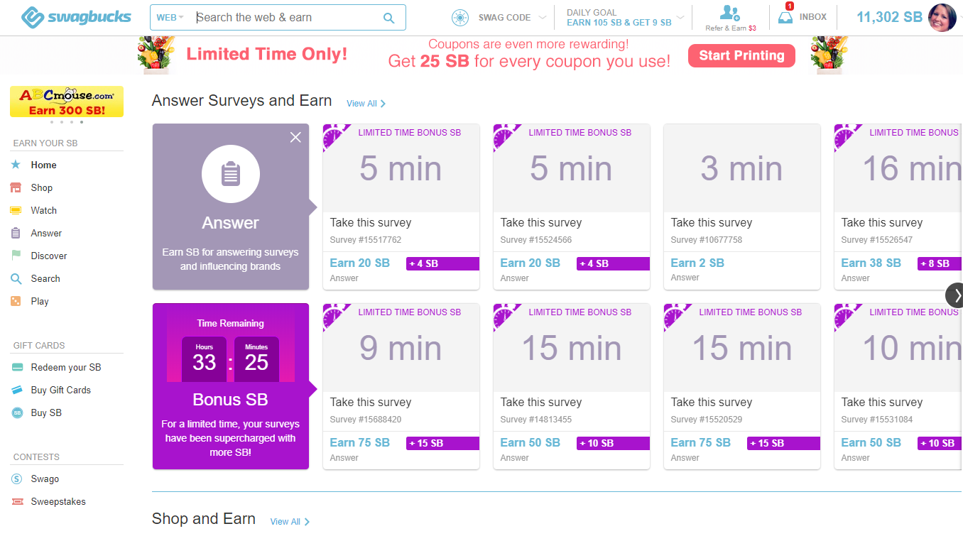 I could literally spend hours on here because you get points for everything! If you print coupons, search for something.